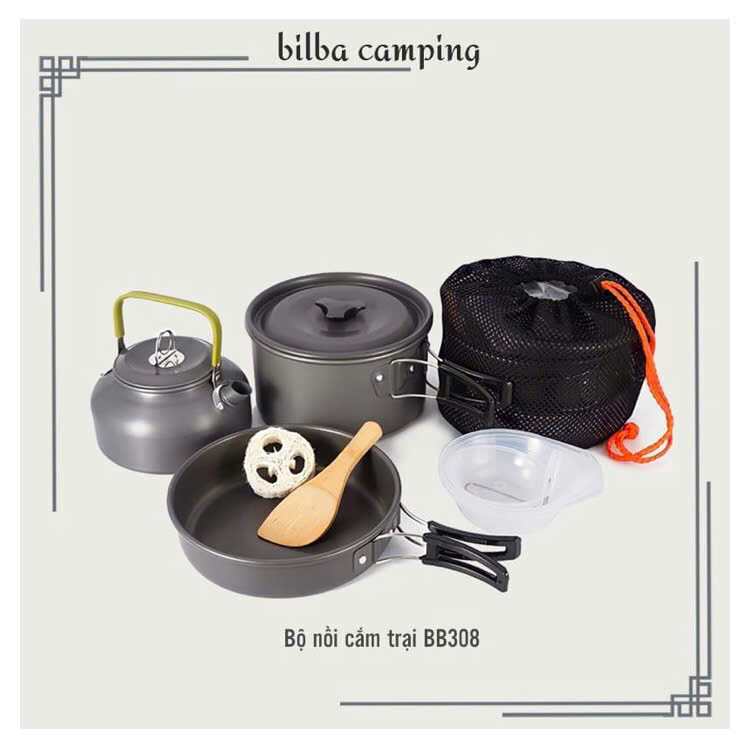 + Bộ nồi cắm trại 3 món bao gồm 1 chảo, 1 nồi, 1 ấm vừa giúp bạn nấu ăn khi đi cắm trại vừa giúp bạn nấu nước pha trà – cà phê